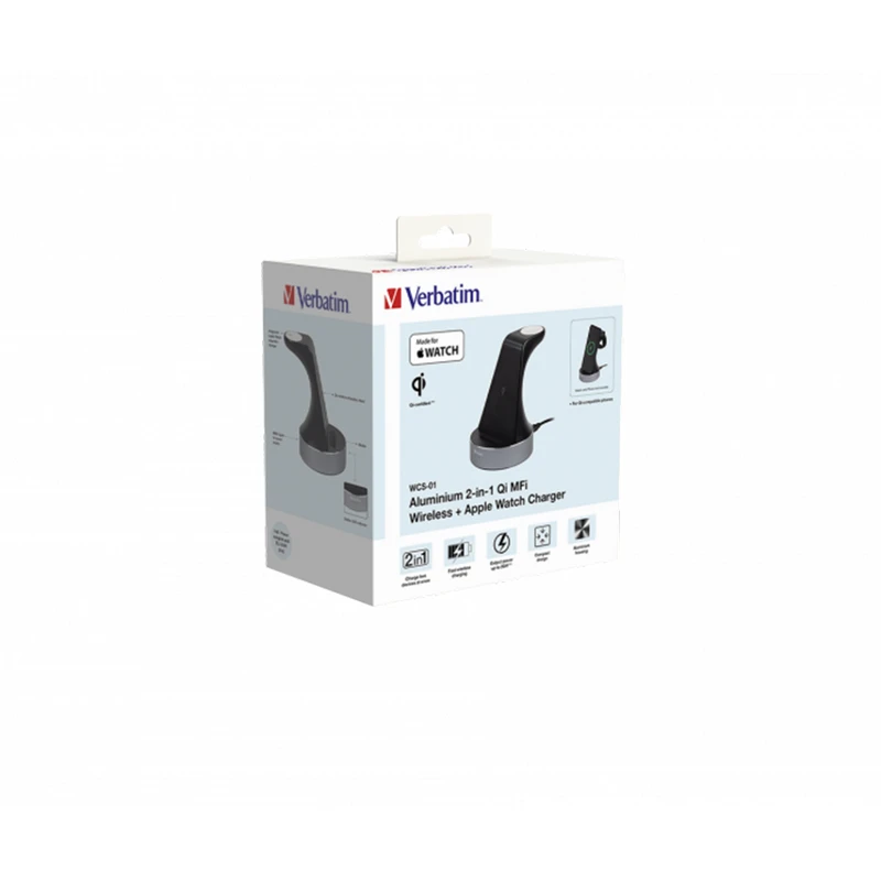 شارژر بیسیم ورباتیم مدل WCS-01 یک پایه شارژ ۲ در ۱ است که امکان شارژ همزمان آیفون (مدل ۸ به بالا یا هر دستگاه سازگار با Qi) و اپل واچ را بهصورت بیسیم فراهم میکند. این شارژر دارای طراحی جمعوجور با بدنه آلومینیومی شیک است که آن را برای استفاده روی میز کار یا کنار تخت مناسب میسازد. پد شارژ بیسیم آن میتواند از طریق اکثر قابهای گوشی تا ضخامت ۳ میلیمتر شارژ را انجام دهد. ماژول شارژ مغناطیسی اپل واچ با تمامی سریهای این ساعت، از جمله سریهای ۷، ۸ و Ultra سازگار است. توان خروجی کل این دستگاه ۲۰ وات است: ۵ وات برای اپل واچ و تا ۱۵ وات برای گوشیهای هوشمند، بسته به مدل دستگاه. این شارژر دارای گواهیهای MFi (Made for Apple Watch) و Qi است و از ویژگیهای ایمنی مانند حفاظت در برابر جریان و ولتاژ بیش از حد، تشخیص اشیاء خارجی و تشخیص خودکار حضور یا عدم حضور دستگاه بهره میبرد. ابعاد آن ۱۱۶.۵×۸۹×۱۳۰ میلیمتر و وزن آن حدود ۲۶۷.۵ گرم است.